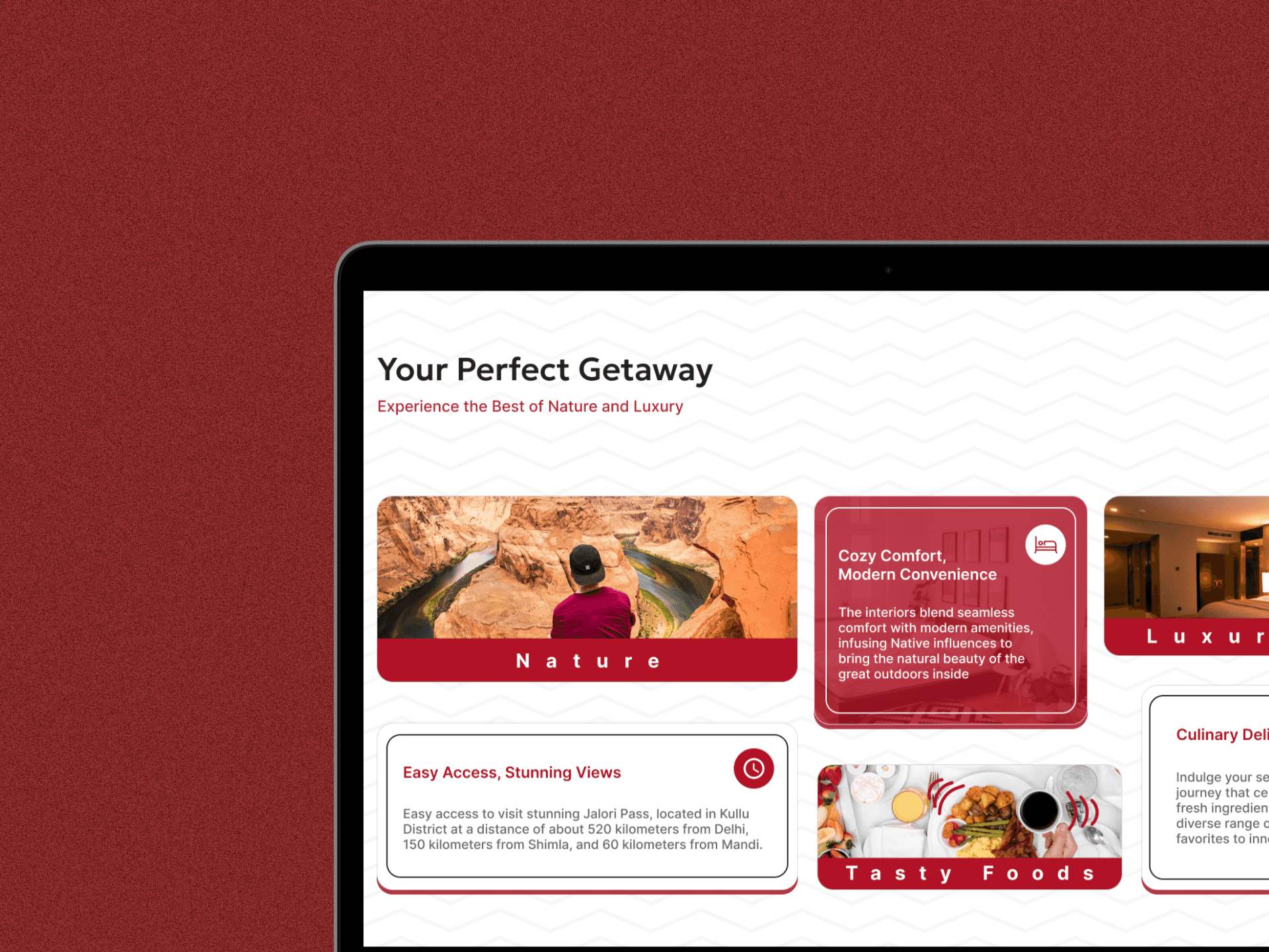 Modern Aesthetic: A vibrant and inviting visual design, utilizing a clean layout with a white background complemented by bold red accents.